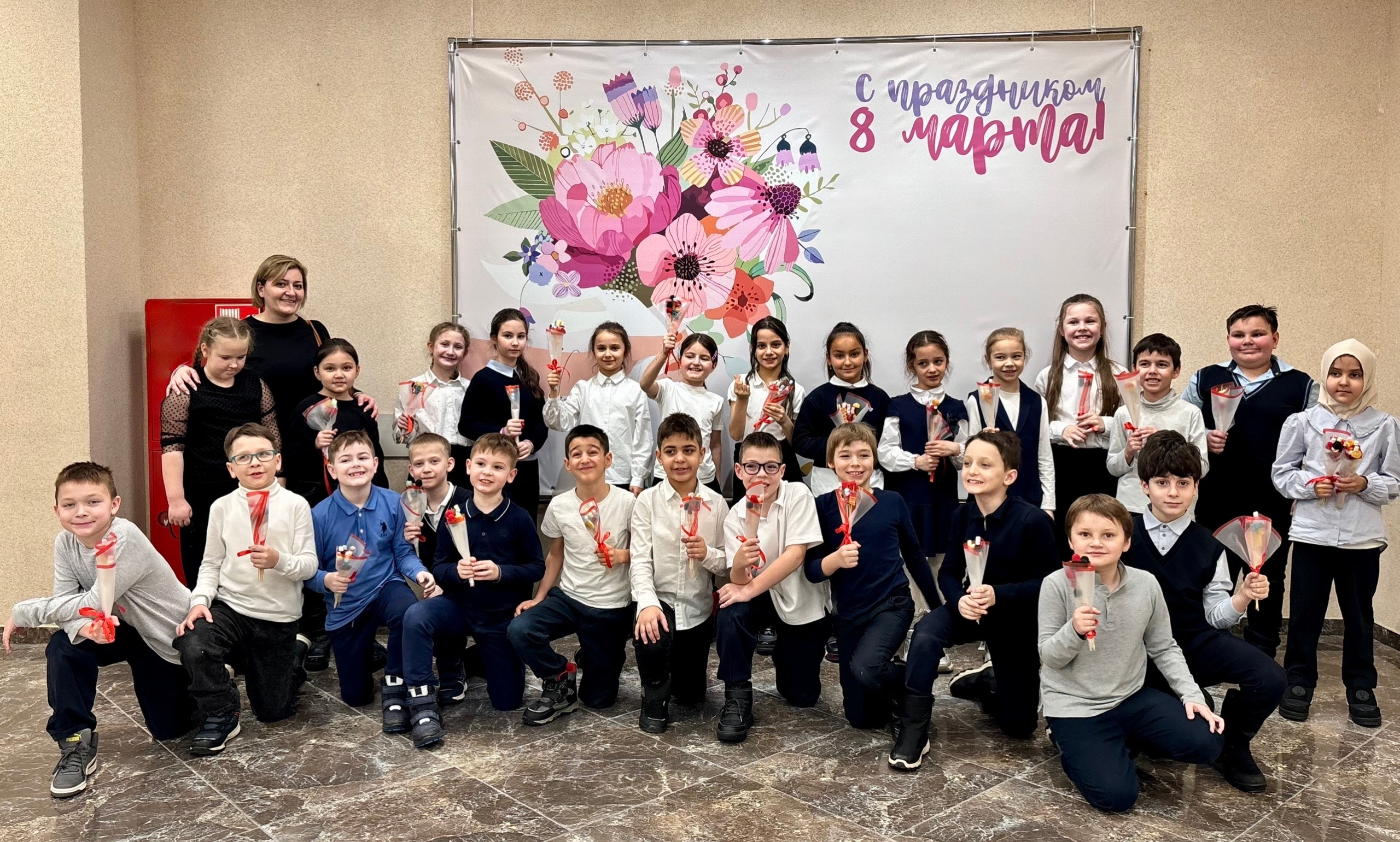 Своими руками ребята смастерили сладкие букеты для своих любимых мам к 8 марта.